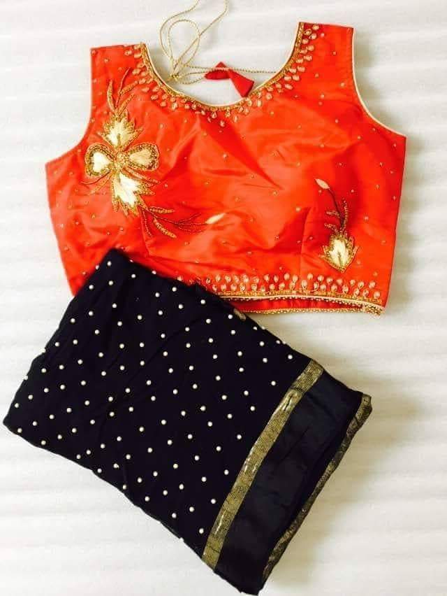 Georgette pearl work saree with ready made blouse